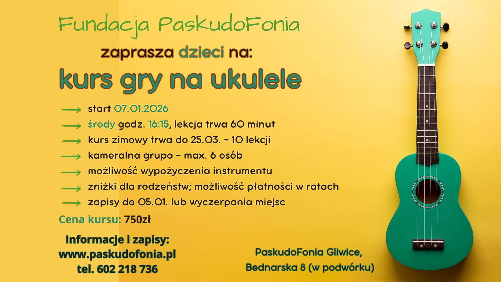 Zapisy i opłaty online: https://www.paskudofonia.pl/…/ukulele-dla-dzieci-i…/